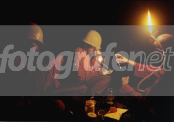 Difoto di dalam gua dengan pencahayaan hanya dari api yang ada di helm. Model sedang memperagakan penelitian kualitas air, menghitung DO/CO.