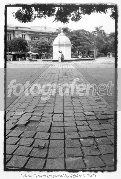 Ade, what are u trying to say? Penunjuk arah? Kalau itu bisa gue tangkap, dengan pola perspektif ubin dan bentuk kubah. Yang pasti, perspektif ubin bersifat sebagai lead-in ke kubah dan dua orang yang berada di ujung. Tapi begitu sampe disana, rasanya tidak ada objek yang kuat disitu. Salam.PS: Lu gak cuti hari Senin depan?