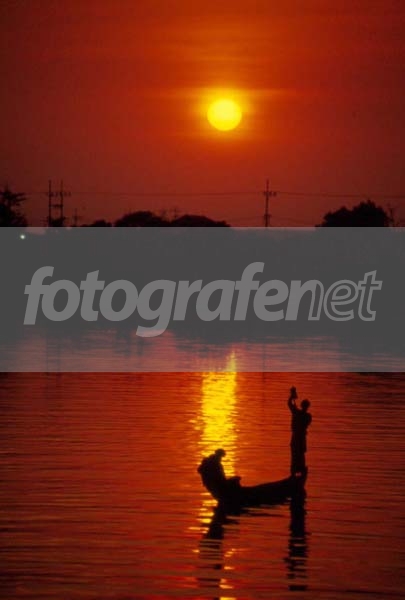 Siluet perahu dan orangnya bagus, matahari dan warna langit-danaunya wow!