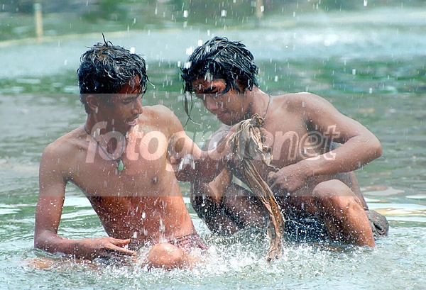 Macho men lagi mandi.