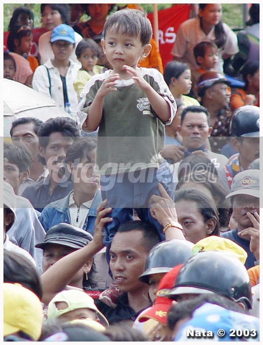 Masih dari Festival Kemerdekaan untuk Rakyat. Inilah gambaran seorang orang tua yang sayang sama anaknya sampai rela menggendong sang anak biar dapat melihat aksi panggung Putri Vinata dan Edy Brokoli......