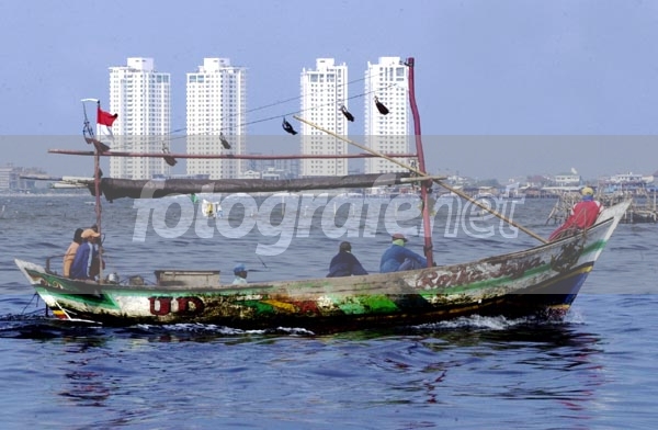 BG dengan gedung2 bikin foto ini tambah kuat. Judulnya nelayan kota, gmana (imho).