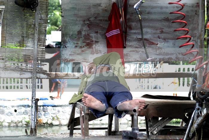 Penjaga tambal ban yang sedang istirahat di siang hari. rnPS untuk levelling, burn, USM 125/1.5/1, resize.