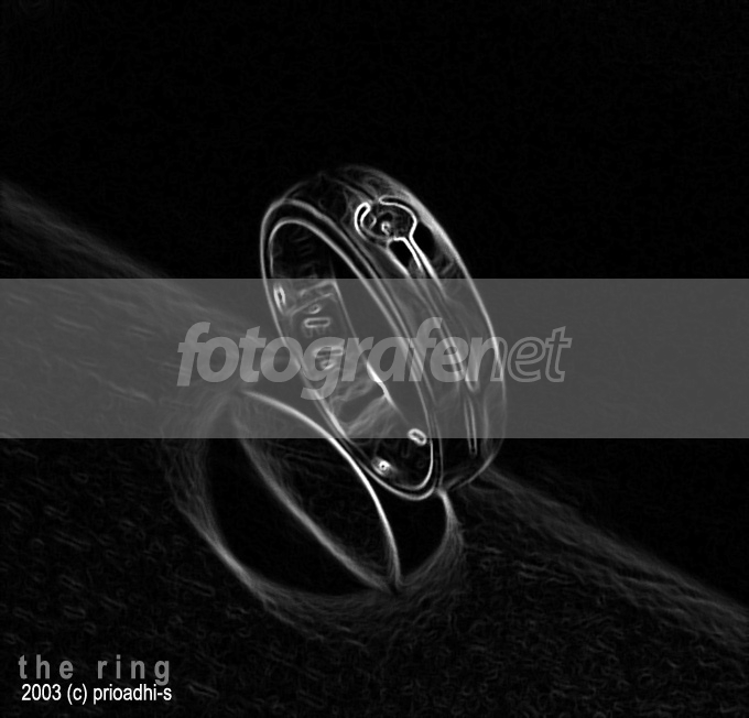 Ketika ia jauh dariku,rnsepi menjadi nafas waktuku...rnditemani teman pengikat kalbu rnkuyakin, diantara gelap menghimpit..rndia sendiri.... rnrnsebenarnya ini cincin tunangan yang bakal jadi wedding ring...tapi karena cuman atu, kayaknya kurang pas kalo saya kasih judul my wedding ring... rnBosen dengan hasil yg biasa2 ajah, saya coba maenin dengan PS, utak-atik...dapetnya kayak gini.. rnaslinya, ini cincin saya taruh di meja kayu (susahnya minta ampun akhirnya saya korbankan mejanya...,saya coak dikit supaya dia bisa berdiri), kasih lighting pake meja belajar...senburat2 putih di 1/3 kanan bawah itu serat kayu...trus putih keperakan2 di cincin sblah kiri itu (kayak lord of the ring yah?) sbenarnya cetakan nama...hasilnya?rnterkesan magis, tapi saya suka...rn kalo ada yang berkenan mohon saran dan komen nya yah? :)