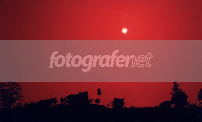 Merah membara..nuansanya seram..pas ada burung2 lagi.. seperti kelelawar malam.. this is like an abstract image..well done, Dino..