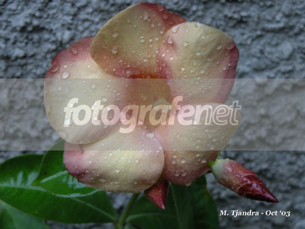 Bunga yang menarik. Butir-butir airnya menambah kesan segar. Saturasi warna kalo bisa ditingkatkan. Pemilihan BG pas dengan angle yang tepat.