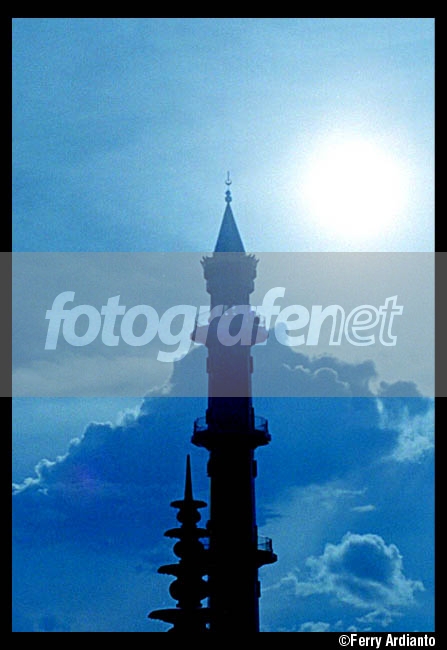 Menara masjid Agung Palembang, depan jembatan ampera saat kami ambil pada siang hari setelah salat ied.