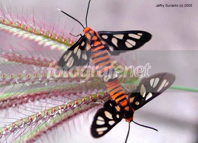 Versi lain dari kupu-kupu dari famili Amatidae (ordo Lepidoptera). Menarik sekali warna dan momennya. Warna BG-nya yang abu-abu hanya sedikit mendukung.