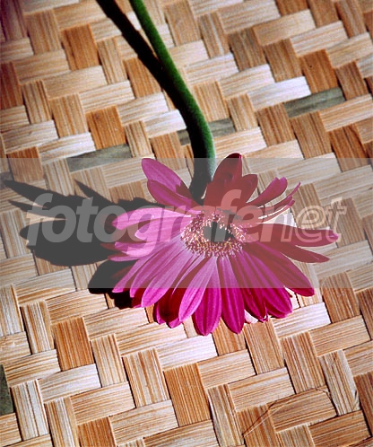 komposisi yang amat menarik bunga merah diatas anyaman bambu tajam dan detail