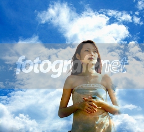 2 foto yang di mix menjadi 1 foto yg indah! well done! langitnya biru bgt. Raut wajahnyapun ayu..., salam...