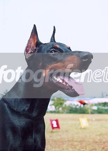 Seekor dobermann saat judging. Nama dobermann lupa karena bentuk dan warna hampir semua sama..hehehe..