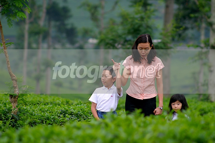 Suasananya begitu sejuk.... Obyeknya jelas, sayang daun tehnya mengganggu wajah anak perempuan.