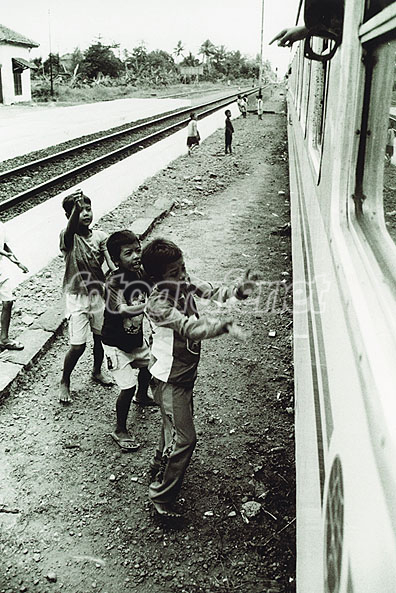 Beberapa orang anak memperebutkan uang yang dilempar penumpang KA Fajar Utama Yog-Jkt yg aku tumpangi. Di kejauhan tampak anak-anak lain yg juga siap menanti lemparan duit dari penumpang.. :)