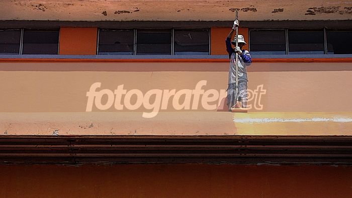 Diambil jam 11 - an siang di arena pameran IPTN Bandung.rnposisi orang yang sedang ngecat ini ada diatas sebuah hanggar..yang sekarang dicat warna kuning-orange.rnPS work : sharpen,cropping, posteredge, saturasi.