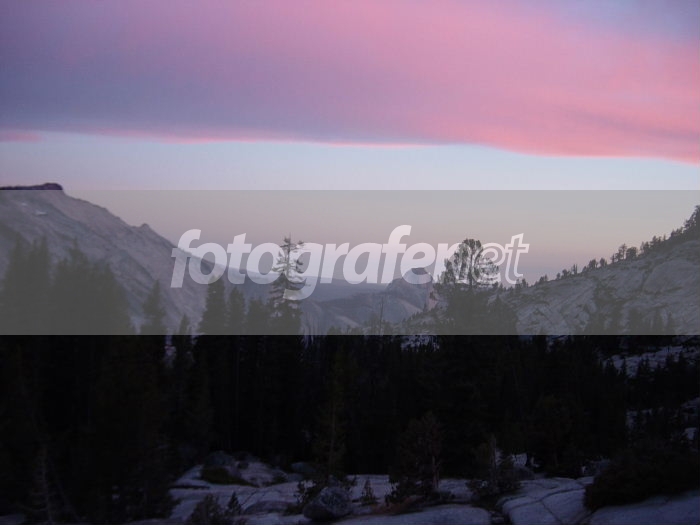 Glacier View saat senja di Tioga Pass, Yosemite, California.