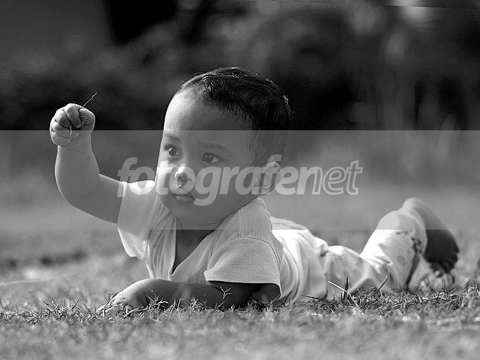 mumpung belum mandi pagi, si raka 1 tahun dibiarkan merumput (main rumput) untuk dipotret di depan rumah.
