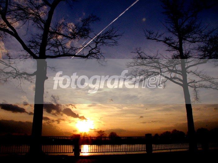 sunset dan siluetnya cakep, framing dengan pohon keren
