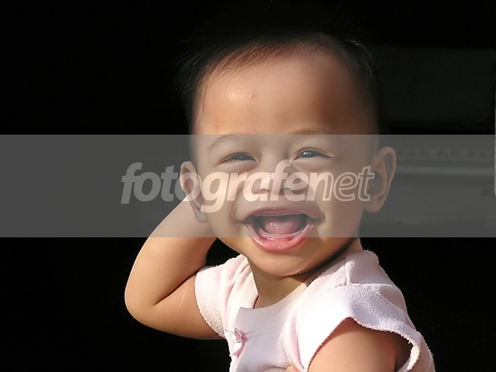 Mengandalkan Side Lighting dari sinar matahari pagi di teras rumah. BG hitam adalah ruang tamu yg gelap. Dihalusin dikit mukanya di NI. Model : Dioni (7 bln) keponakanku di Smg.