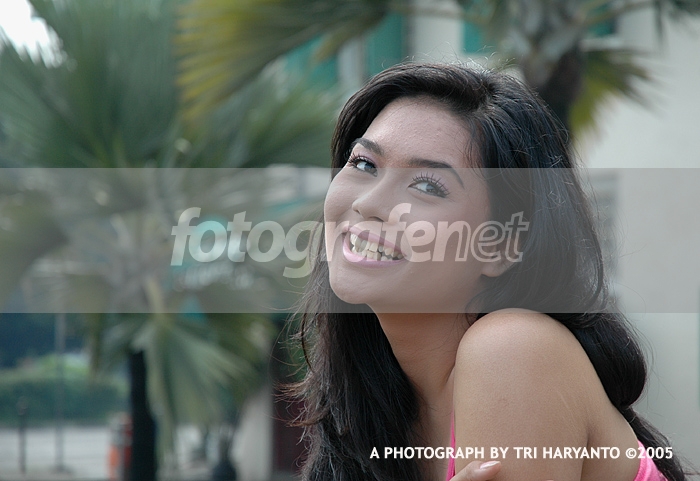 Motret model yang pertama kali, nih. Cuaca di luar agak mendung, tapi jadi menguntungkan karena tidak menimbulkan bayangan keras. PS digunakan untuk cropping, sharpness, dan brightness adjustmen dikit. Selebihnya original, termasuk modelnya juga original model! Any comments very welcom.