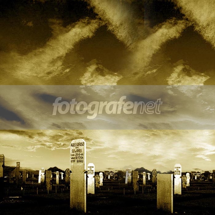 foto jadi kurang menarik karena: clonning awan mu tidak rapih dan sangat repetitif...... kontrast terlalu tinggi sehingga beberapa nisan menjadi washout... coba burn sedikit biar lebih harmonis dengan nuansa lainnya... dof yang terbentuk agak ngayal....