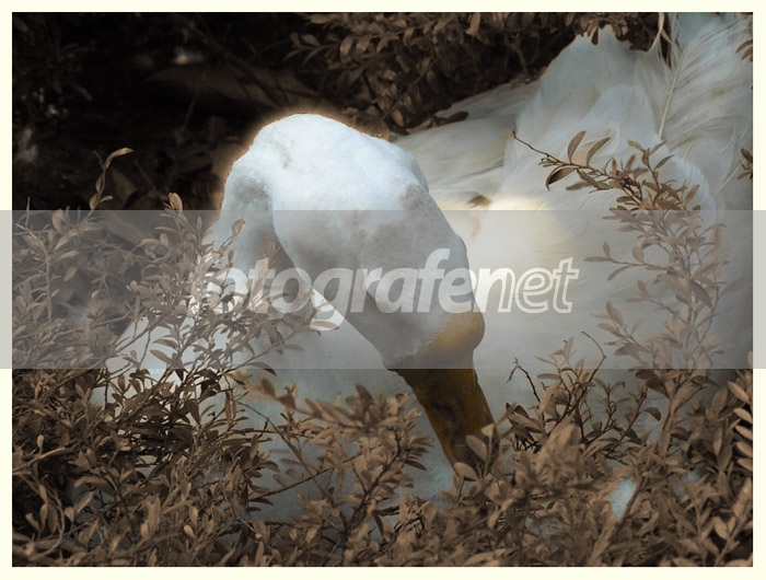 Angsa sedang mengeram telurnya di luar kubah Taman Burung TMII. rnPS untuk mengolah warna daun, glow, dll.