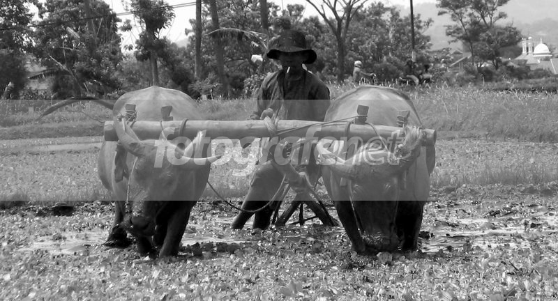 obyek yg menarik... suka dengan komposisi & tone BWnya... sayang muka petaninya agak gelap...imho nice shot...salam...!