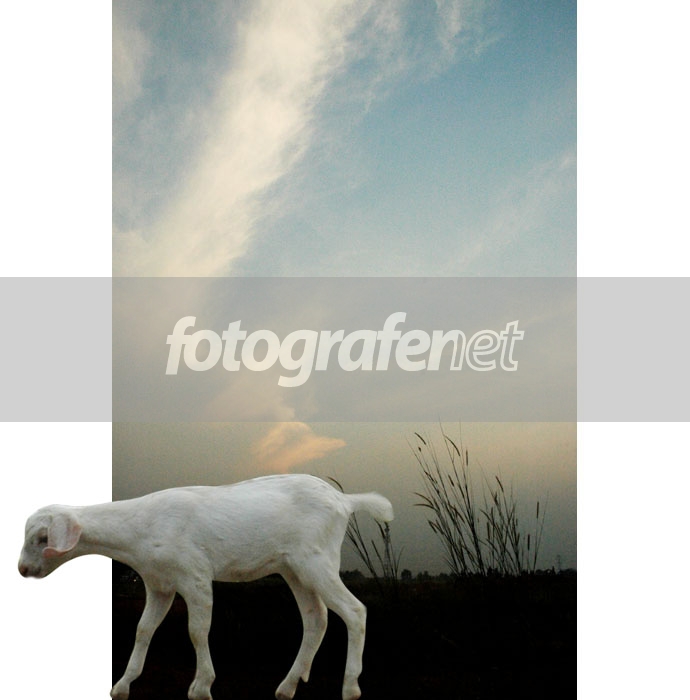 Konsepnya bagus sekali. Eksekusinya sedikit kurang rapi di bagian hidung kambing dan ketajaman 2 foto ini agak berbeda (B/G agak noise, kambingnya cukup tajam). Anyway good photo!