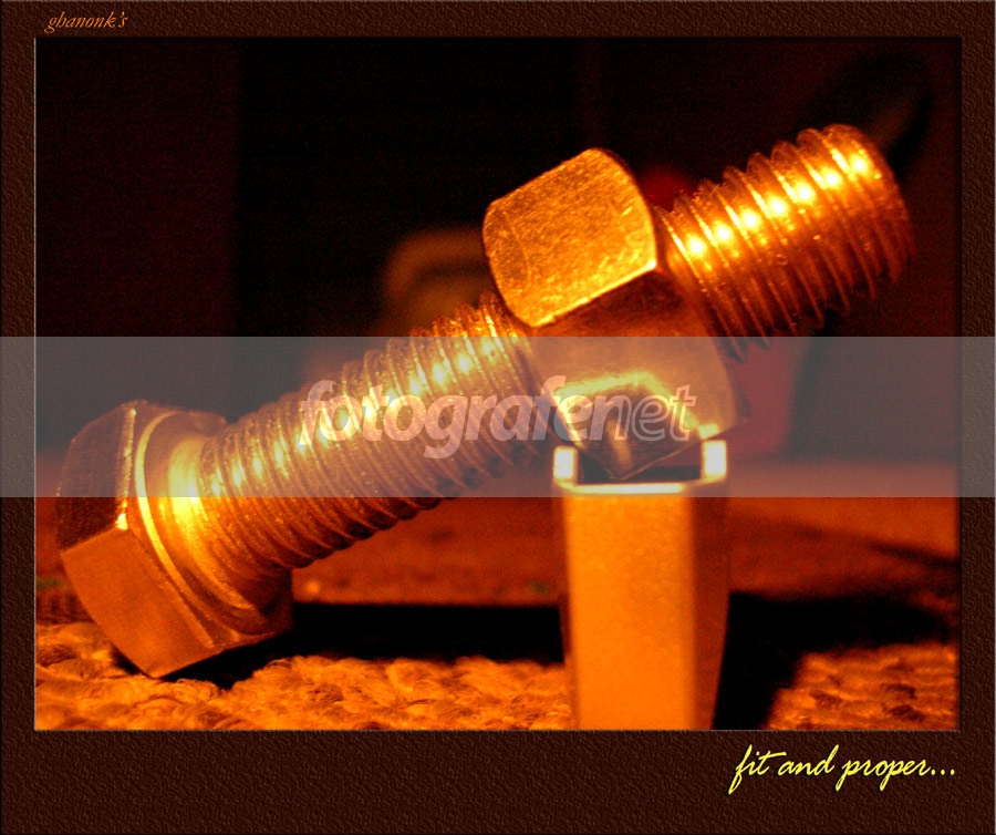 Fotonya tampak sedikit blur dan distorsi dari lensa menyebabkan kepala sekrup keliatan bengkok. Backgroundnya agak mengganggu.