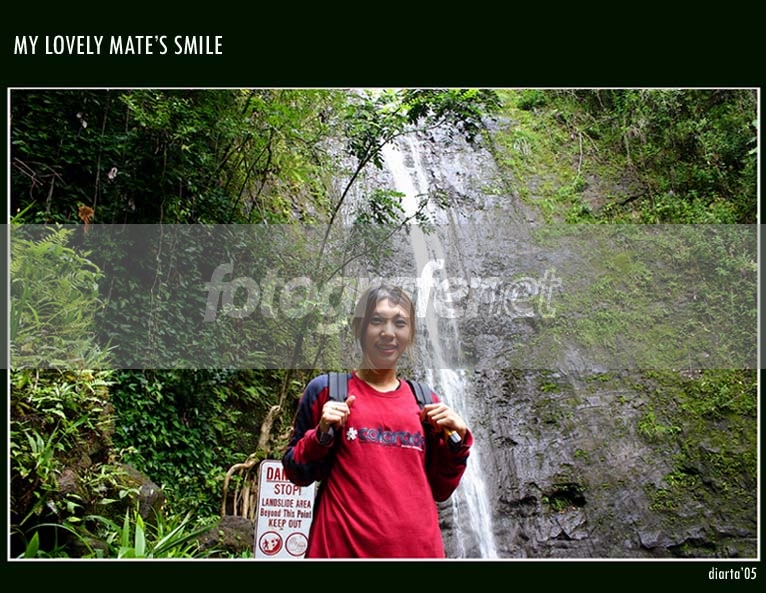 Date Time Original: 2005:06:17 09:58:31rnISO Speed Ratings: 400rnrnBARU HABIS HIKING BEBERAPA JAM LALU...MASIH CAPEK BERAT. STOK FOTO UNTUK MINGGU-MINGGU MENDATANG MENGGUNUNG BANGET..HE..HE....INI SGB PEMBUKA AJA....LAGI TERBAYANG-BAYANG AMA SENYUMNYA...HIKS..HIKS...rnrnBANG JANU, SHE'S HAWAIIAN ORIGIN...LOOKS LIKE JAPANESE? HAWAII (PEARL HARBOUR) HAS A CLOSE HISTORICAL STORY WITH JAPAN RELATED TO WORLD WAR II. KALO MODELNYA EMANG BANDEL GAK MAU KE PINGGIR, PADAHAL BIKIN KOMPO RUSAK..HIKS...HIKS....GMN LAGI? DIANYA NGAKAK MULU.....BANDEL !!
