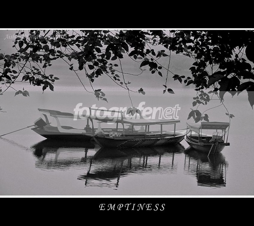 Mbak Ais... Anto kasih 2TU ya? Anto coba jabarin kelemahan yang Anto liat secara visual. Pertama, secara komposisi; garis horison terlihat miring. Walaupun Anto kasih kredit buat framing daun nya yang jeli dan tepat. Coba aja kalo bawa tripod, ada banyak manfaat dari tripod. Selain lebih leluasa ngatur komposisi dan ngatur garis horison, juga kita dapat men set shutter speed menjadi sangat lambat sehingga aliran air dapat menjadi halus. Kedua, Pemberian teks di atas kiri dirasa kurang tepat. Sebaiknya dihilangkan, dikecilkan atau di taruh di kanan/kiri bawah. Ketiga, nada foto BW nya masih terlihat semburat warna magenta, Mbak. Keempat, ini yang paling penting. Secara tematik dan simbolis bidang, kesan sepi kurang di dapat. Karena apa? Karena secara komposisi bidang, ada tiga perahu disana. Secara simbolis, kesepian dan keheningan lebih pantas di visualisasi kan dengan satu perahu... Semoga berkenan ya Mbak Ais...