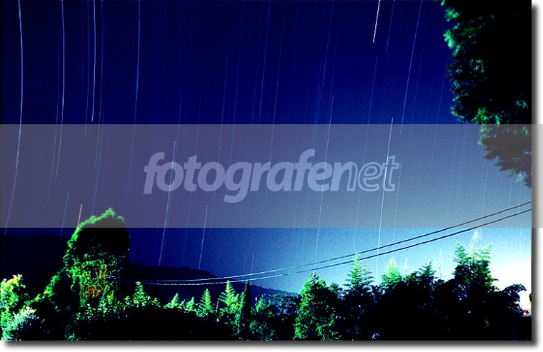 1,5 hours exposure at ciloto's sky rnrnSekedar mau berbagi pengalaman, mudah-mudahan berguna...rnrnpercobaan pertama gagal, baru tahu setelah shutter akan ditutup (setelah 1 jam penyinaran). Ini disebabkab karena baterai habis dan akibatnya shutter macet. Akhirnya saya tutup lensa dengan lanscap dan saya isi baterai baru kemudian saya ON kan lagi ternyata shutter bisa menutup. Tapi hasilnya di film gelap total, ini mungkin juga karena bukaan yang terlalu kecil (f/22)rnrnpercobaan kedua gagal karena setelah sekitar 20 menit penyinaran gumpalan awan putih menutupi bintang-bintang dan akhirnya penyinaran dihentikan.rnrnpercobaan ketiga (ini yang saya upload) data-data nya sebagai berikut :rnfilm : Kodak ProImagernAsa : 100rnKamera : F75DrnLensa ; Nikon AF 28-80 GrnFocal Length : 28mmrnFocus : infinityrnSpeed : 1,5 jam ( 5400 detik ) rnDiafragma : f/8rnWaktu pengambilan sekitar 02.30 - 04.00rnrnMasih banyak kekurangan memang di foto ini terutama di foreground, untuk itu mohon masukan, kritik dan saran dari rekan-rekan. TU atau TD diterima dengan senang hati.rnMudah-mudahan saya bisa upload lagi startrails yang lebih baik dari ini.rnsalam...