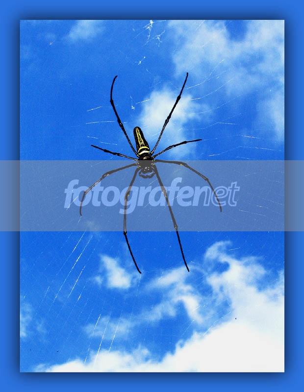 Nephila pilipes, lancah. Warna dan komposisi bagus. Tajam dan kontras.