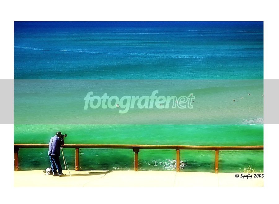 Di Tweedhead, perbatasan Queensland dan New South Wales waktu itu lagi rame katanya ada paus yang berenang2 deket pantai, jadi agak banyak juga saya liat fotografer ngumpul dengan lensa tele juga mereka yang membawa teropong, sayang sang paus terlalu jauh nampaknya, sehingga rekan kita ini memilih memotret para surfers..Saya juga sih, akhirnya cuma bisa motret surfer meskipun sudah ganti lensa 80-200mm hehe. Segala kritik dan saran demi perbaikan diterima dengan senang hati. Terimakasih..Info teknis tambahan: Pak Yadi, betul ini dari atas saya ambilnya, nggak terlalu jauh, focal length: 55mm.