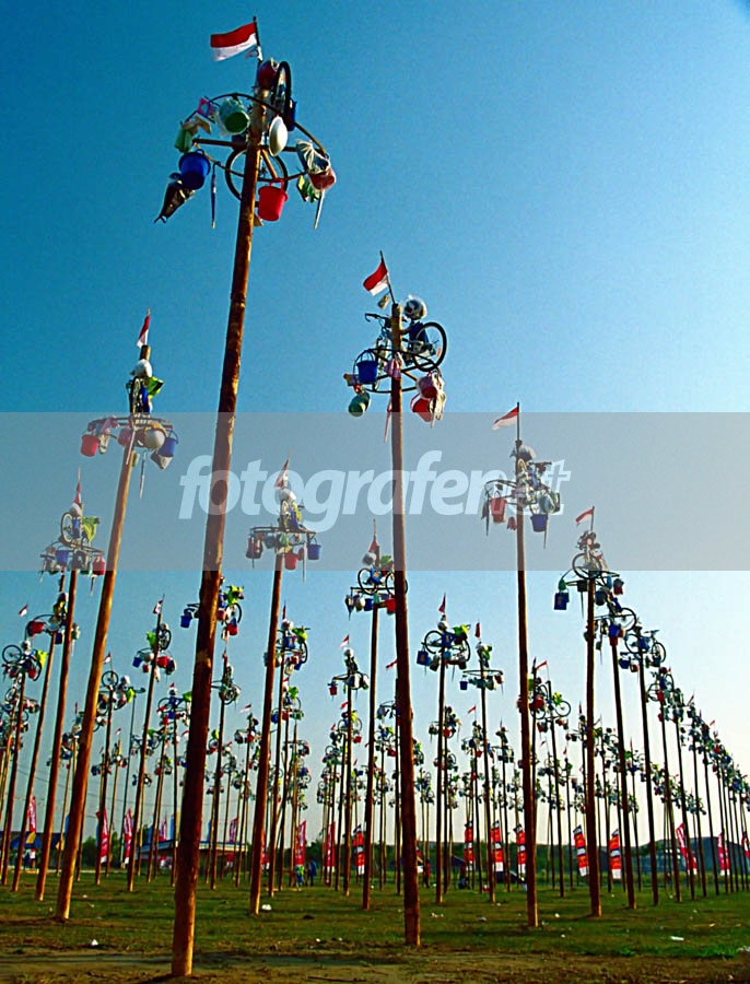 Inilah sebagian dari 260 batang pinang yang akan dipanjat serentak utk memeriahkan 17an beberapa waktu yg lalu.
