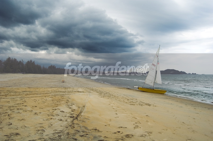 komposisinya ciamik, moment yabg bagus dengan awan hitam bergulung membagi langit dengan kurva yg terbalik dengan kurva yg dibuat oleh garis pantai... Nice shot