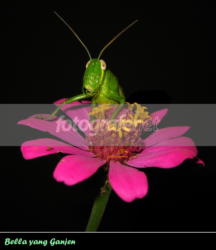 Malam2 iseng keliling di Halaman belakang rumah. Ada pemandangan menarik. Seekor anak Belalang sedang memanjat tangkai bunga dengan susah payah. nBuru2 aja ambil kamera untuk momen terbatas ini. nSaat jeprets, tiba2 belalang ABG itu malah bergaya ala Model.nBerpose di putik bunga dengan ganjennya.nKasih nama Bella aja deh atas gayanya!!nnPSCS untuk level, blur dan framenTangkai bunga sengaja dibuat agak gelap, agar tak beradu atensi dengan si Bella.nFonts sengaja dipilih yang agak genit deh.nMonggo caci makinya...