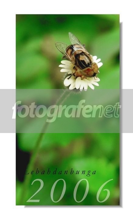 yup.. fokusnya lari ke kembang .. bukan di lebahnya.. dan tulisannya kegedean .. kaya kalender.