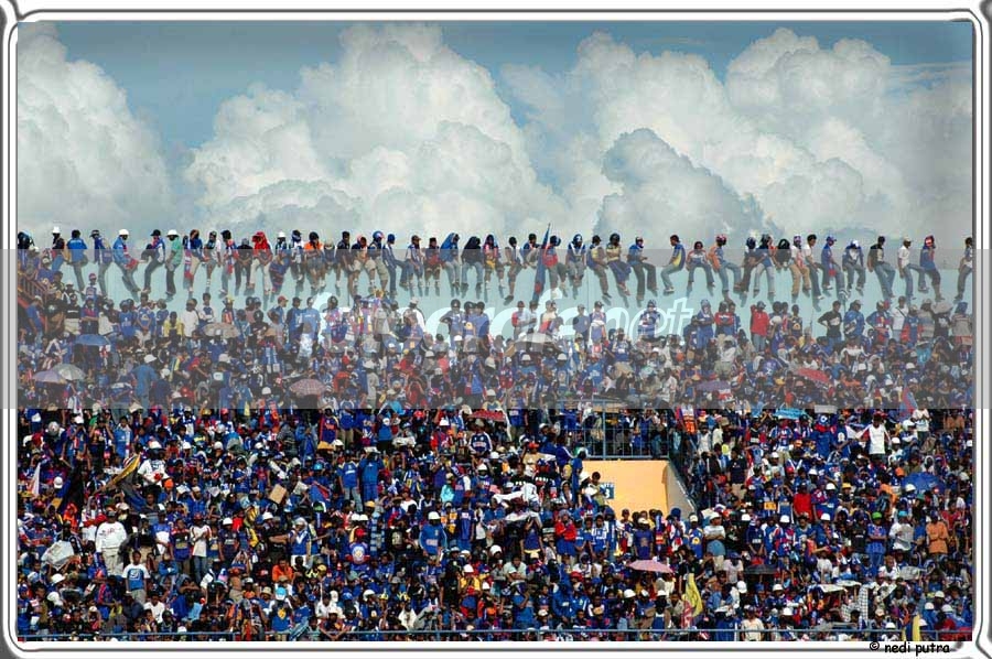 Waduh asik banget ya pose Aremania .... Kalo mau warnanya difalsekan ...asik kali yak ...langitnya tambah biru ... dan warna birunya dikontrasin ...Pake saturation aja ....iseng2 aja ... Salam seko Kera Gunungkidul