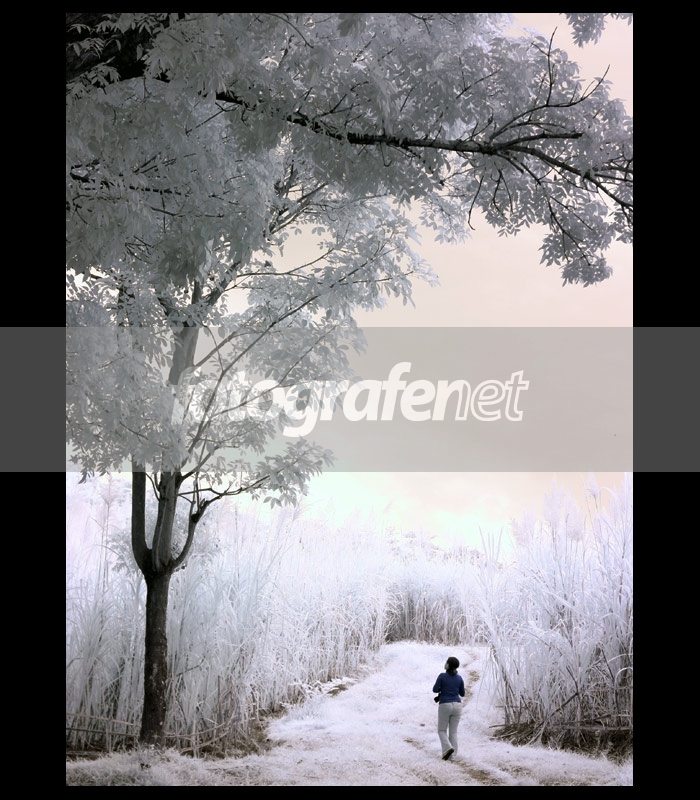 Saya tdk terlalu paham dgn IR namun photo ini terasa banget emosinya dgn adanya objek orang yg sedang kebingungan dan angle yg pas utk menghiasi frame... Light rerumputan agak di kanan dan kiri objek OE sehingga detailnya bnyk yg hilang.. but i like this pic... salam motret