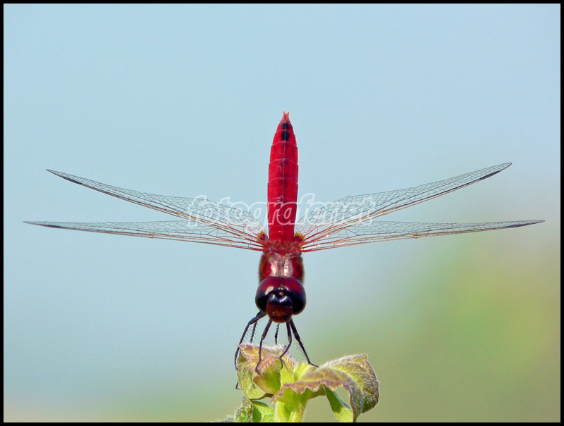 Capung merah ini baru saja "mendarat" dengan mulus di pucuk perdu.