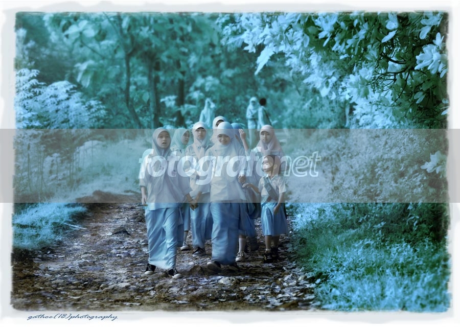 Mereka terselamatkan alam ...nMereka adalah anak2 dari Dusun Nganjir di Semin, Gunungkidul. Menurut info terkhir gempa, ternyata episentrum gempa justru dibawah wilayah Gunungkidul, hanya karena struktur tanah Gunungkidul, yang dilapisi lapisan batu karang yang tebal, maka efek kerusakan gempanya tidak sedemikian hebat seperti di Bantul dan Klaten. (Struktur Tanah ini selama ini menjadi stereotip negatif tentang Gunungkidul, kering dan gersang. Sekarang telah menjadi penyelamat)nnDengan semangat menyala, mereka tetap berangkat sekolah (Di Gunungkidul, Sekolah tetap berjalan). Jarak ke sekolah sekitar 10km dari rumahnya, untuk mendapat angkutan, mereka harus turun gunung dulu sejauh 4 km, Waooww .... Jadi setiap hari mereka harus berangkat dari rumah sekitar Pukul 05.00 start dari rumah.nnFoto diambil pagi sekitar Pkl. 05.50. JPEG Fine, WB Preset, V.3 HArlim + R25A, ISO 200 Digital.nnKritik dan sarannya, Monggo.nnSalam dari Gathoe 18 from Gunungkidul