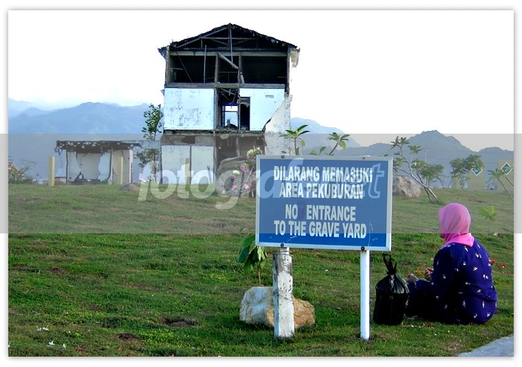 di jepret saat Tradisi Meugang tanggal 23 Sept 2006 saat warga aceh nyekar di kuburan massal korban tsunami di Ulee Lheu.rn---------------------------------------------- ---------rnrnrnAda kuburan yang dicekam sepi,rnmakam penuh tulang-tulang yang memperparah sunyi,rncuma degup jantung menembus lorong, tanpa bunyirntambah gelap, makin gelap, maha gelap.rnBagai karam kapal, maut tenggelam ke dalam diri sendiri.rnSeperti kita terbenam ke dalam jantung sendiri,rnSeperti hidup terlepas dari kulit lalu merasuk jiwa sendiri.rnrnAda mayat-mayat,rndengan kaki berlumur liat, dingin dan lekatrndi rapuh tulang, maut menaut.rnSeperti suara menyalak, tapi tak ada anjing yang tampak.rnDatang dari genta, datang dari makam entah di mana,rntumbuh pada udara lembab pengap hujan air mata.rnrn(this photo i dedicated to My beloved Wife & Son that was Die on Tsunami)rnalmarhumah dan almarhumrn" Dr. Cut Yuna Nefita & Soulthan Khalil Athalah "