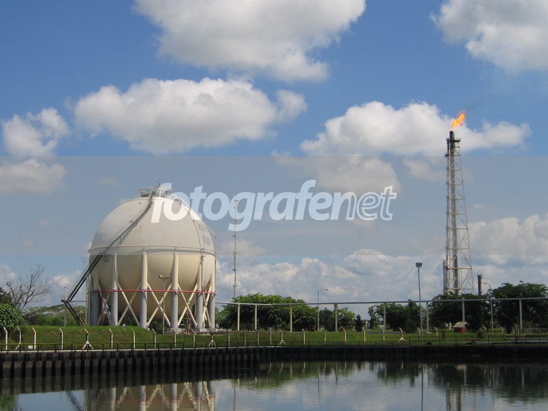 Sekedar info, diameter tanki bola tsb adalah sekitar 25 meter dan tinggi menara api (flare stack) sekitar 90 meter.nnDate Time Original: 2005:03:17 09:58:14