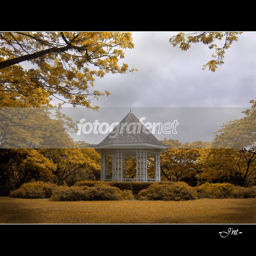 Dear FNers,rnAutumn tricking lagi nih… aslinya semua daun n’ rumput hijau… dan masih dgn gear apa adanya, semoga berkenan.rnrnTempat ini namanya “Bandstand” letaknya di tengah2 Singapore Botanic Garden, tempat ini untuk peristirahatan bagi pengunjung sambil menikmati pemandangan anggrek bulan warna ungu sebelum melanjutkan perjalanan keliling SBG.rnrnPsalm 27:5 – “For in the time of trouble HE shall hide me in HIS pavilion: in the secret of HIS tabernacle shall HE hide me; HE shall set me up upon a rock.”rnrnWelcome for any comment biar tetap kuat… :(rnrnOriginal Picture + PSCS2: channel mixer, burning, framing n’ resize.rnrnDate Time Original: 2006:11:20 rnISO Speed Ratings: 80