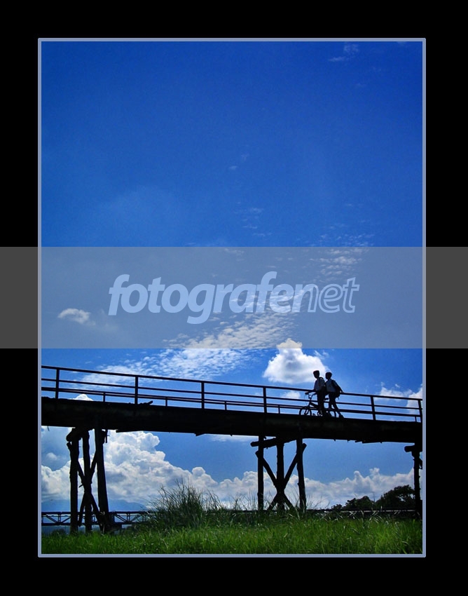 siluet jembatannya bagus...anglenya mantap..langitnya cantik...perfect shot!Tapi aku lebih suka rumput hijaunya diilangin aja..jadi yg dalam frame cuma hitam (siluet jembatan dan orang) dan biru (langit)...imho..salam