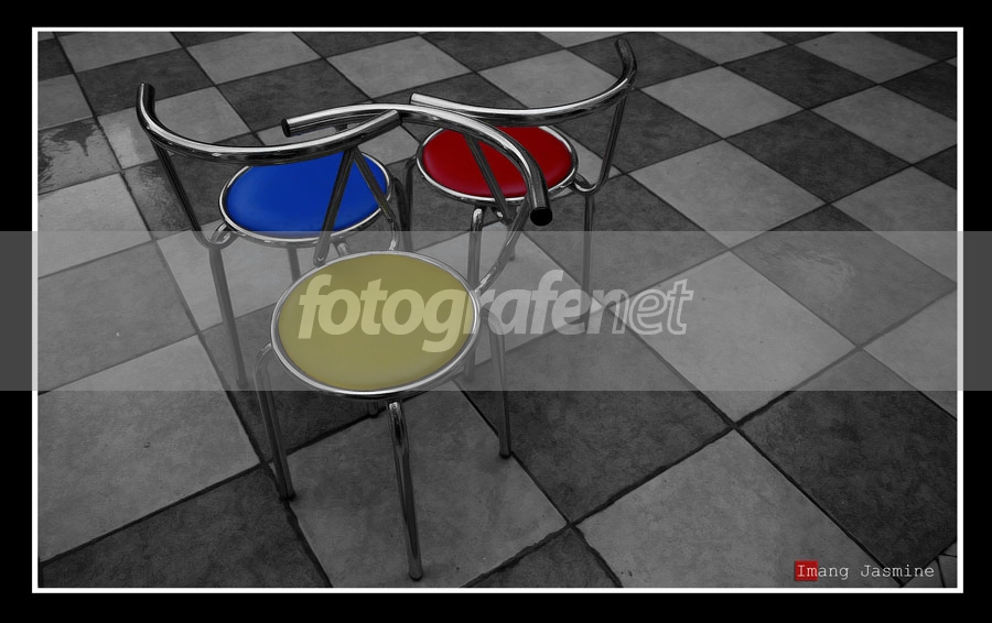Maaf aku kasih tambahan "Racun" dijudul foto ini lantaran ketawa saja tadi pas chat ymsg dengan Om Evodius Purwoko. nCeritanya gini : Foto ini dapetnya kebetulan saja, pas aku sore tadi ngajarin (ngracunin) seorang temen yg datang mo minta saran beli kamera dan mau belajar motret. Tadinya aku taruh vas bunga di kursi, untuk ngajarin pelajaran pertama, ngepasin fokus. gak dapet dapet tuh si temen titik fokusnya, terus tak liat liat, lantai depan studio fotoku unik juga, terus aku ambil dua kursi lagi, yo wis tak tata gitu, terus tak jepret, aku olah (temenku juga ngliat ngolahnya di PS) waktu liat jadinya dia cuma diem... kok aku gak fokus fokus sih ??? kali racunnya belum mempan....nBTW aku juga masih minta diracun terus ma om evodius Purwoko, thanks om !n....nterima kasih rekan2 sudah mampir dan kasih sarann....nDate Time Original: 2007:01:29 16:32:35nISO Speed Ratings: 250