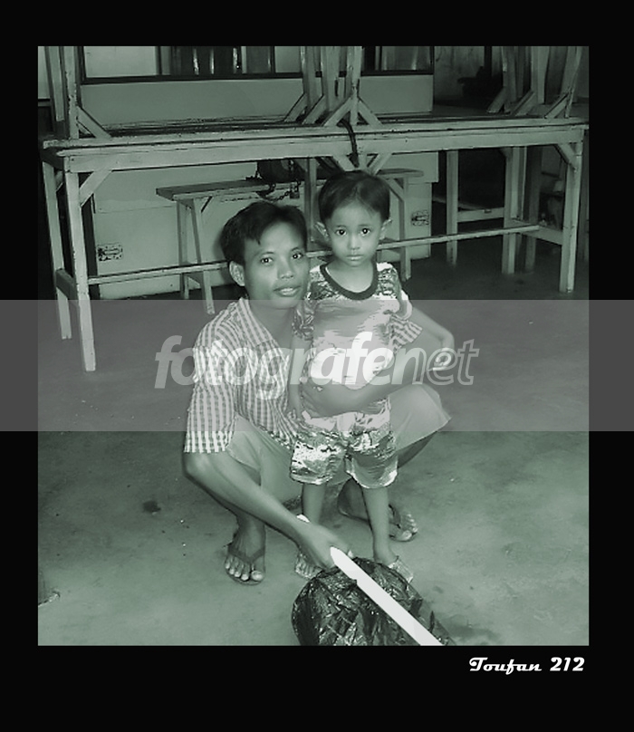 Dipojokan warung dekat Kantor Pos Besar Sby, si bapak lagi ngediamin anaknya (abis nagis) yang minta dibeliin es potong ;-) dijepret, diutak atik, silahkan dibantai ;-)