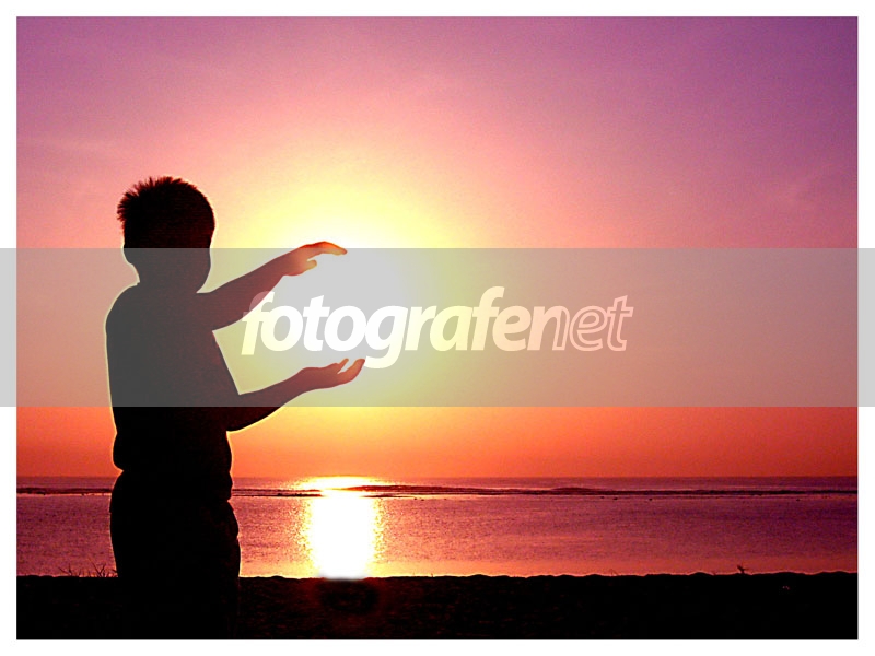 siluet yang bagus...anak kecil ini bagaikan memegang matahari.