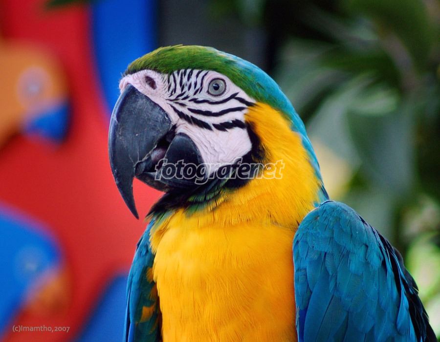 nama yg tertulis adalah blue-yellow macaw parrot. kalau di Indonesia disebutnya burung Nuri kali yaa...rnsuka liat burung ini karena warnanya yg "warna-warni"....rnMaaf data teknis speed & diafragma belum terisi lengkap, salah post processing kali....file asli di tinggal di laptop di apt...rnthx udah mampir n kritiknya doong...biar bisa jadi pinter....