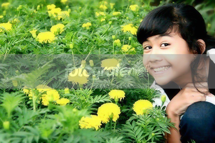 Wah kaya anak India Seyum berbumga - bunga he he... nice shot god ekspresi ok dech ....tapi warna giginya sama koch ama bunganya ho ho... salam ...